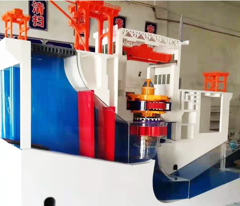 軸流式水輪機(jī)模型 軸流式轉(zhuǎn)輪模型可分為定槳式和轉(zhuǎn)槳式兩種,它們的主要區(qū)別是轉(zhuǎn)槳式轉(zhuǎn)輪的葉片隨導(dǎo)葉開(kāi)度和水頭的變化能自動(dòng)調(diào)整葉片安放角,與導(dǎo)葉保持****的協(xié)聯(lián)關(guān)系。在水輪機(jī)運(yùn)行中,導(dǎo)葉必須按負(fù)荷調(diào)整開(kāi)度,而轉(zhuǎn)輪一邊旋轉(zhuǎn)一邊調(diào)整葉片角度保持與導(dǎo)葉的****協(xié)聯(lián)關(guān)系,即所謂“雙重調(diào)節(jié)”,使水輪機(jī)在較大的出力范圍內(nèi)均保持較高的效率。定槳式轉(zhuǎn)輪由于在運(yùn)行中葉片不能調(diào)整,當(dāng)機(jī)組負(fù)荷發(fā)生變化,導(dǎo)葉開(kāi)度改變時(shí),葉片安放角不能及時(shí)調(diào)整,水流對(duì)葉片沖角增大,所以在整個(gè)出力范圍內(nèi)水輪機(jī)的高效區(qū)很窄,但它的結(jié)構(gòu)簡(jiǎn)單,在中小型電站中仍較多被采用。